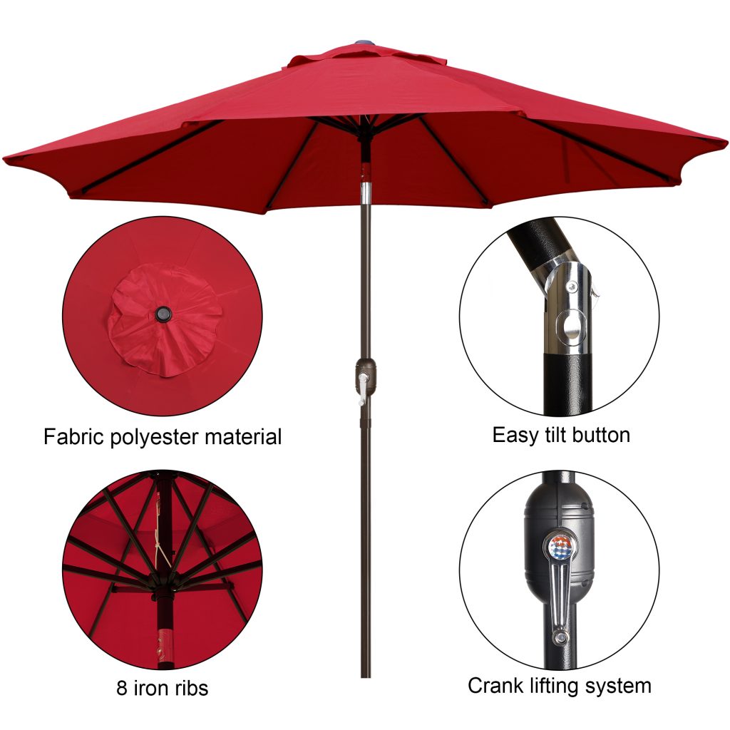 STURDY FRAME — Powder coated aluminum and iron pole, 8 iron ribs provides the yard umbrella superior strength support, easy to use and compact storage.